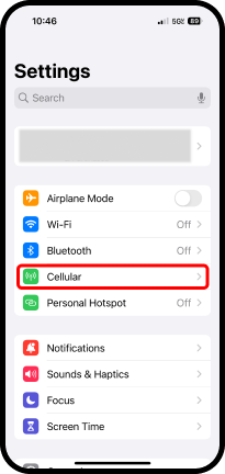 - En la pantalla Settings (Configuración), localice y toque Cellular (Red celular)