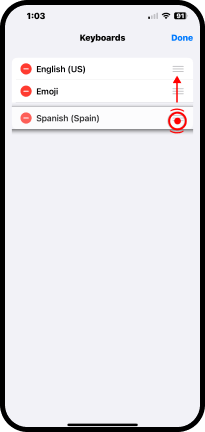 6. Deslícese hasta llegar al teclado Spanish (Español).