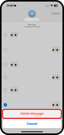 4. Toque Delete Message (Eliminar mensaje). También tiene la opción de cancelar, si no desea borrar el mensaje.