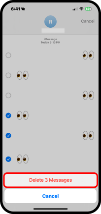 5. Toque Delete 3 Messages (Eliminar 3 mensajes). También tiene la opción Cancel (Cancelar).