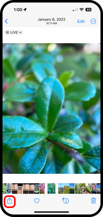 Pasos para compartir una foto que tomó por la app Messages (Mensajes).