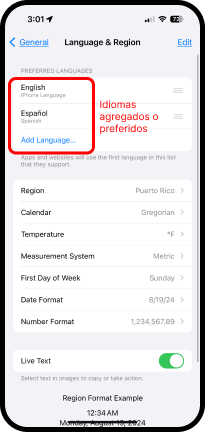 Verifique si tiene más de un idioma en su iPhone en los idiomas preferidos