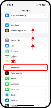 - Desplácese por la pantalla, localice y toque Reminders (Recordatorios).