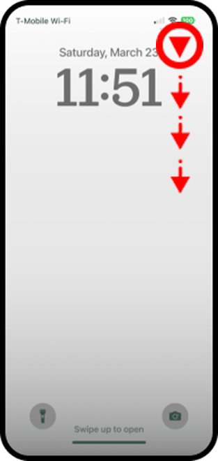 - Para abrir el Control Center (Centro de Control), deslice el dedo hacia arriba desde la orilla de abajo de cualquier página de la pantalla inicial.