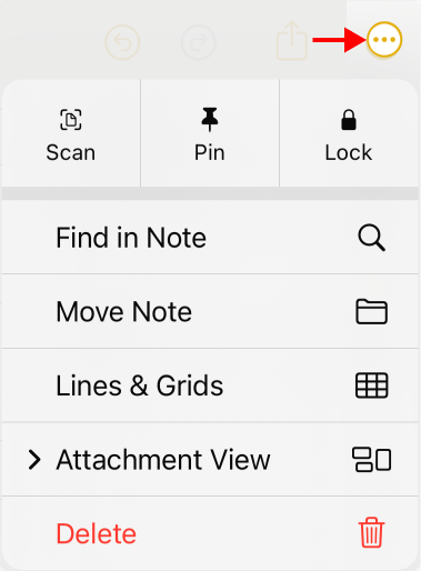 - Bloquear la nota. Asegúrese que está en la nota que quiere bloquear. Toque los tres puntos de la barra de acciones y en el menú emergente, toque el candado de Lock (Bloquear)
