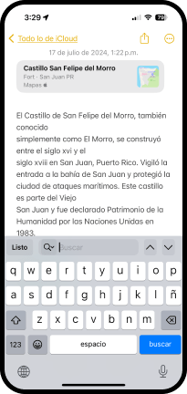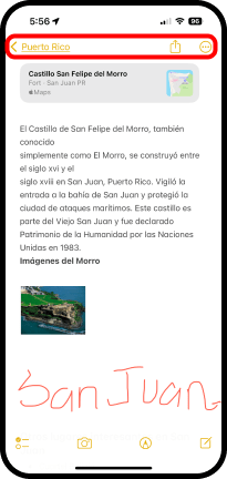 - Toque el nombre de la nota, en este caso El Castillo San Felipe del Morro.