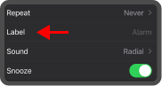 1. Toque Label (Etiqueta) y escriba el nombre de la alarma.