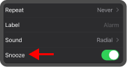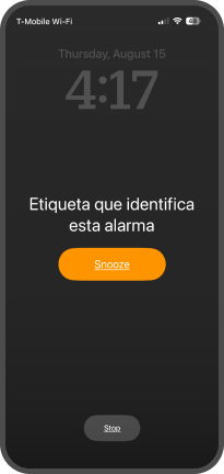 Si enciende esta función, cuando suena la alarma, aparecerá la pantalla Snooze (Posponer) o una notificación en el tope de la pantalla de inicio.