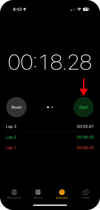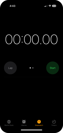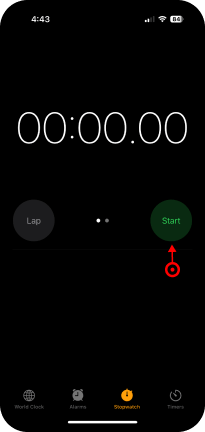 - Acceda la app Clock (Reloj) y toque Stopwatch (Cronómetro).