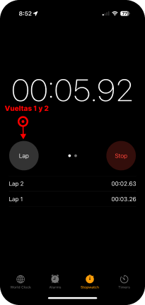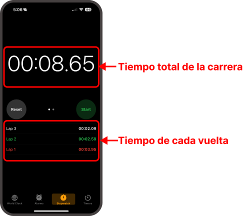 Necesita saber cuánto tiempo le toma completar una actividad, por ejemplo, dar tres vueltas a la pista, el cronómetro es su herramienta.