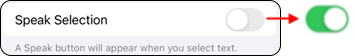 - Toque el botón de la derecha de Speak Selection (Leer selección) para activar la opción.