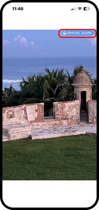 Photos (Fotos) toque foto deseada → Toque el botón SPATIAL SCENE (ESCENA ESPACIAL)