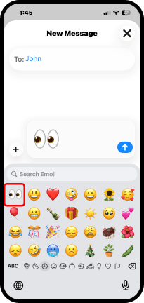 para seleccionar contacto → Toque encasillado de mensaje → Toque emoji